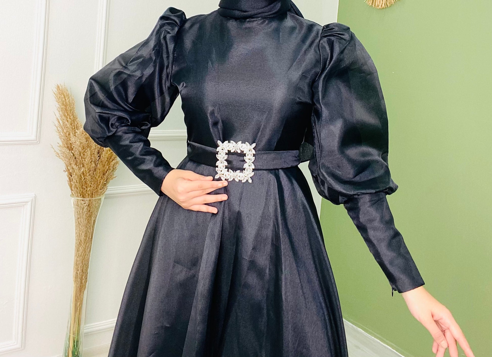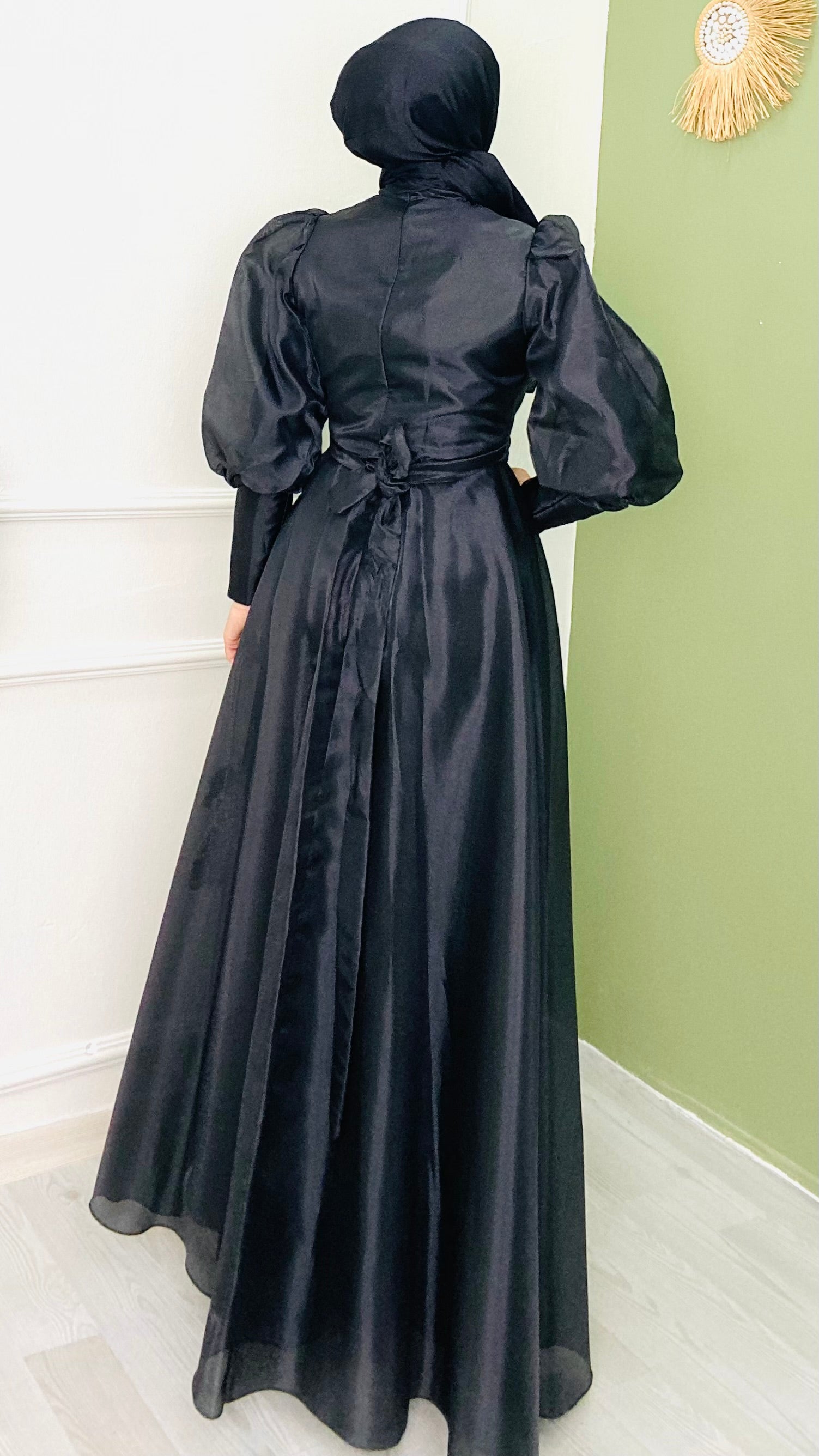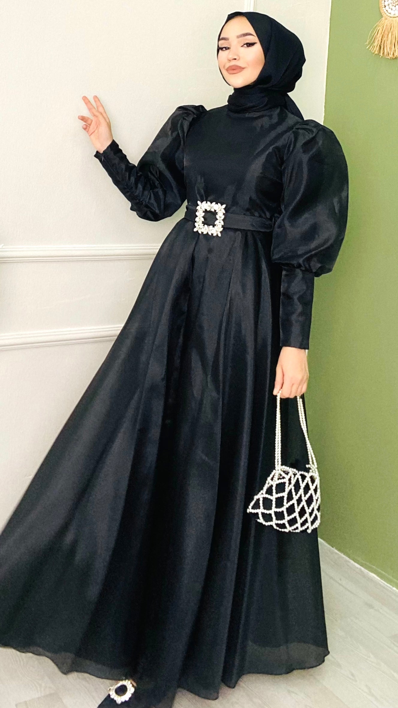 ÜRÜN ADI: Beli Kemerli Balon Kol Abiye
