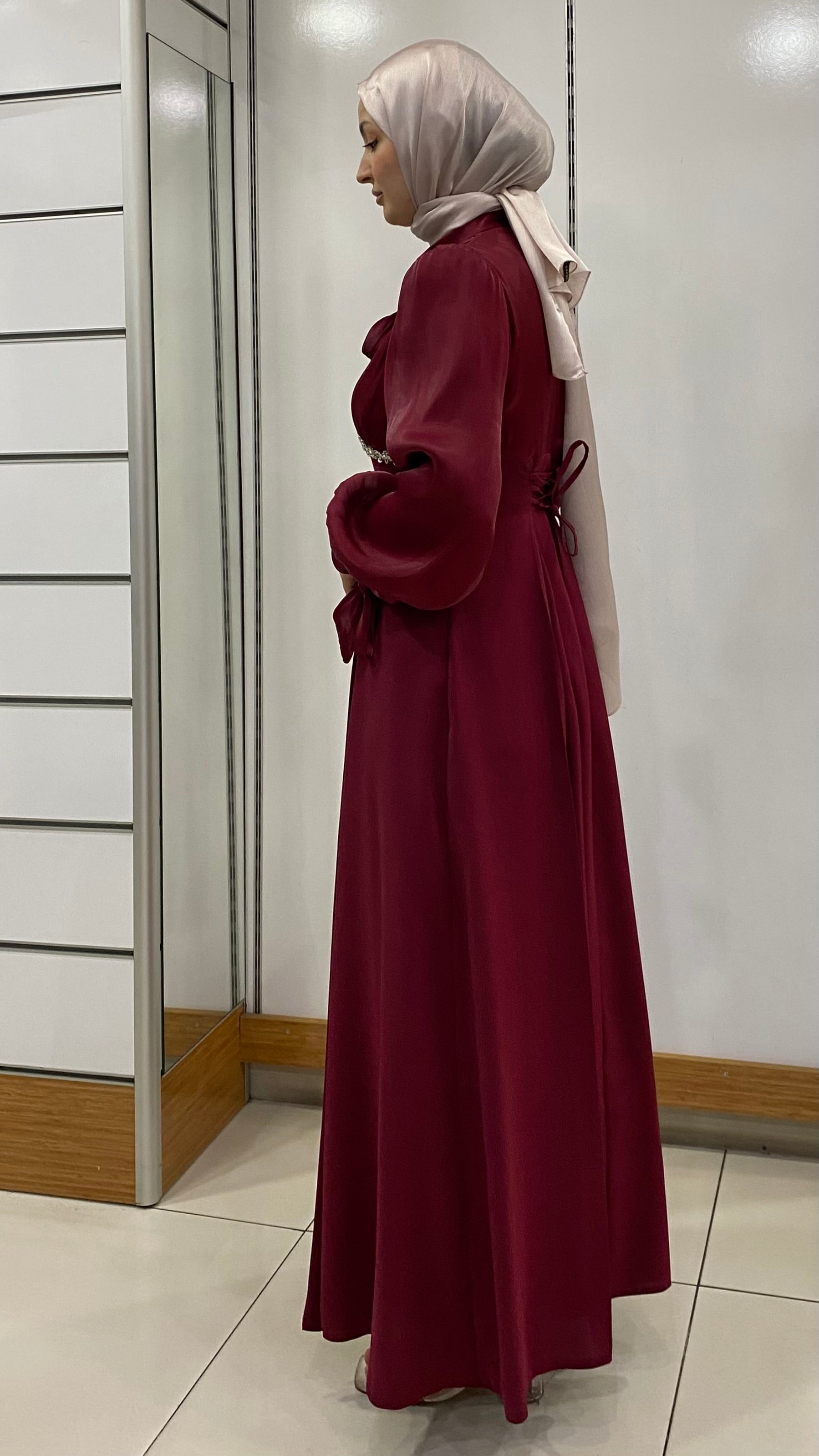 Beli Taş tasarımlı Fenomen Abiye Bordo