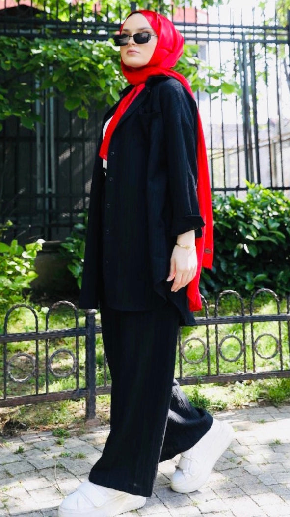 EDİTÖRÜN NOTU: Yeni sezon tek cepli tam boy düğmeli gömlek modeline sahip olan takım modelimiz günlük kullanıma uygundur. Yaz ayı için efil efil çok rahat tercih edilebilecek bir ürün. Asla terletmez. Pantolon beli lastiklidir.