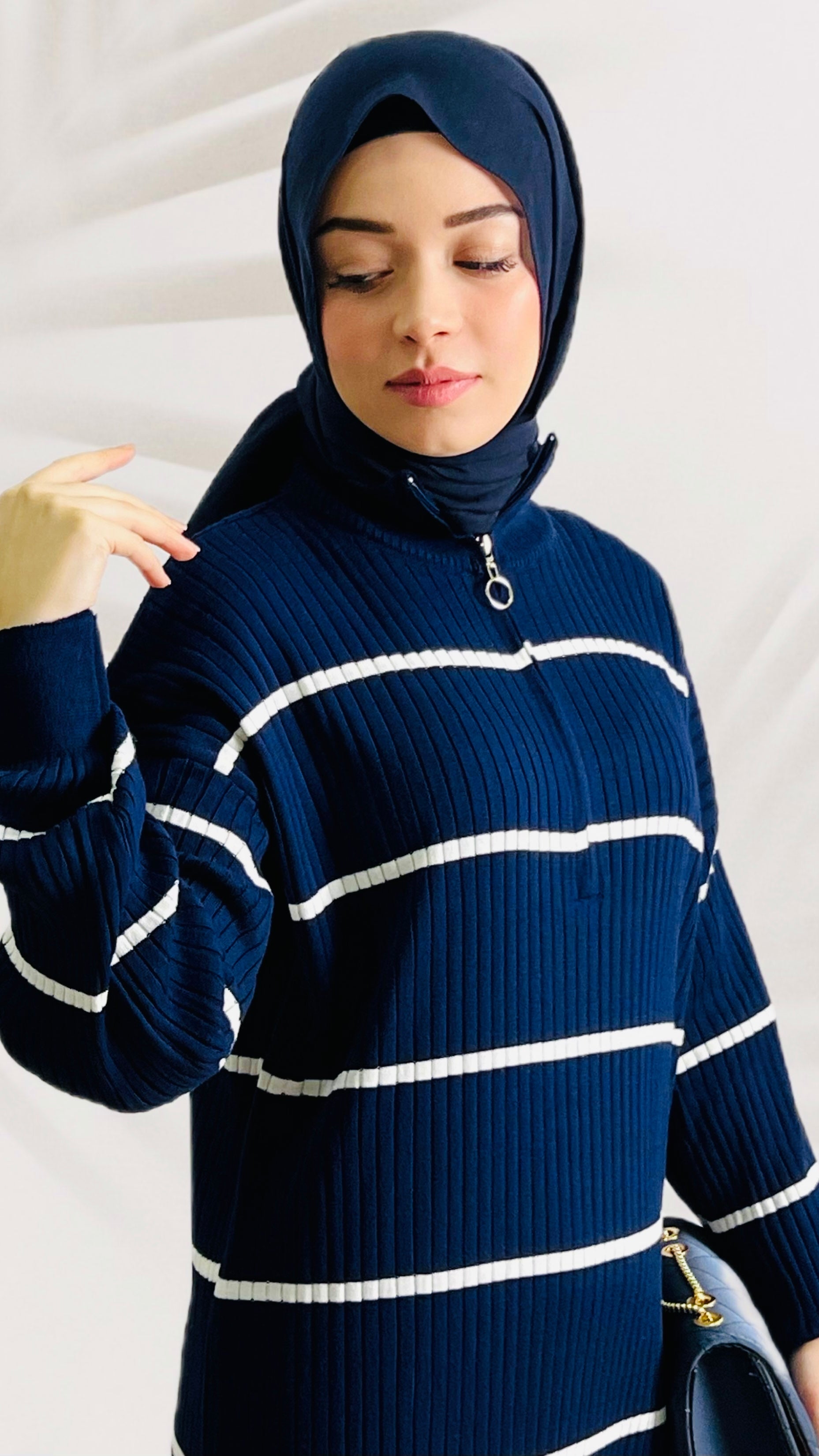 EDİTÖRÜN NOTU: Çizgi Desenli Yarım Boğaz Fermuarlı Triko Elbise Çizgiler Yatay Olup Modele Çok Güzel Bir farklılık Katmış Boğazı fermuarlı Olup Rahatsız Etmeyecek Kadar Olup Kalem Bir Model Olup Esenk Dokumaya Sahiptir Dileyen Üzerine Trenç veya Kaşe Kullanılabilir Dileyen Yanlız Bu Elbiseyi Giyinebilir Altına Spor Ayakkabı veya Botlada Konbin Yapılabilir
