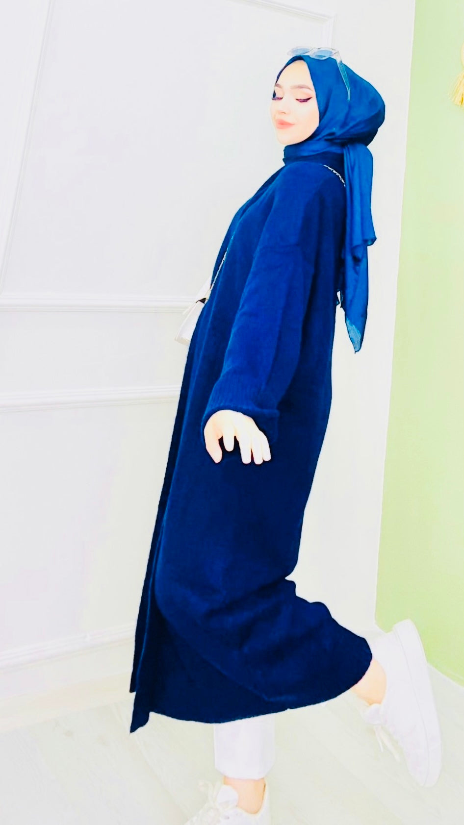 Düğmesiz Tam Boy Hırka Lacivert