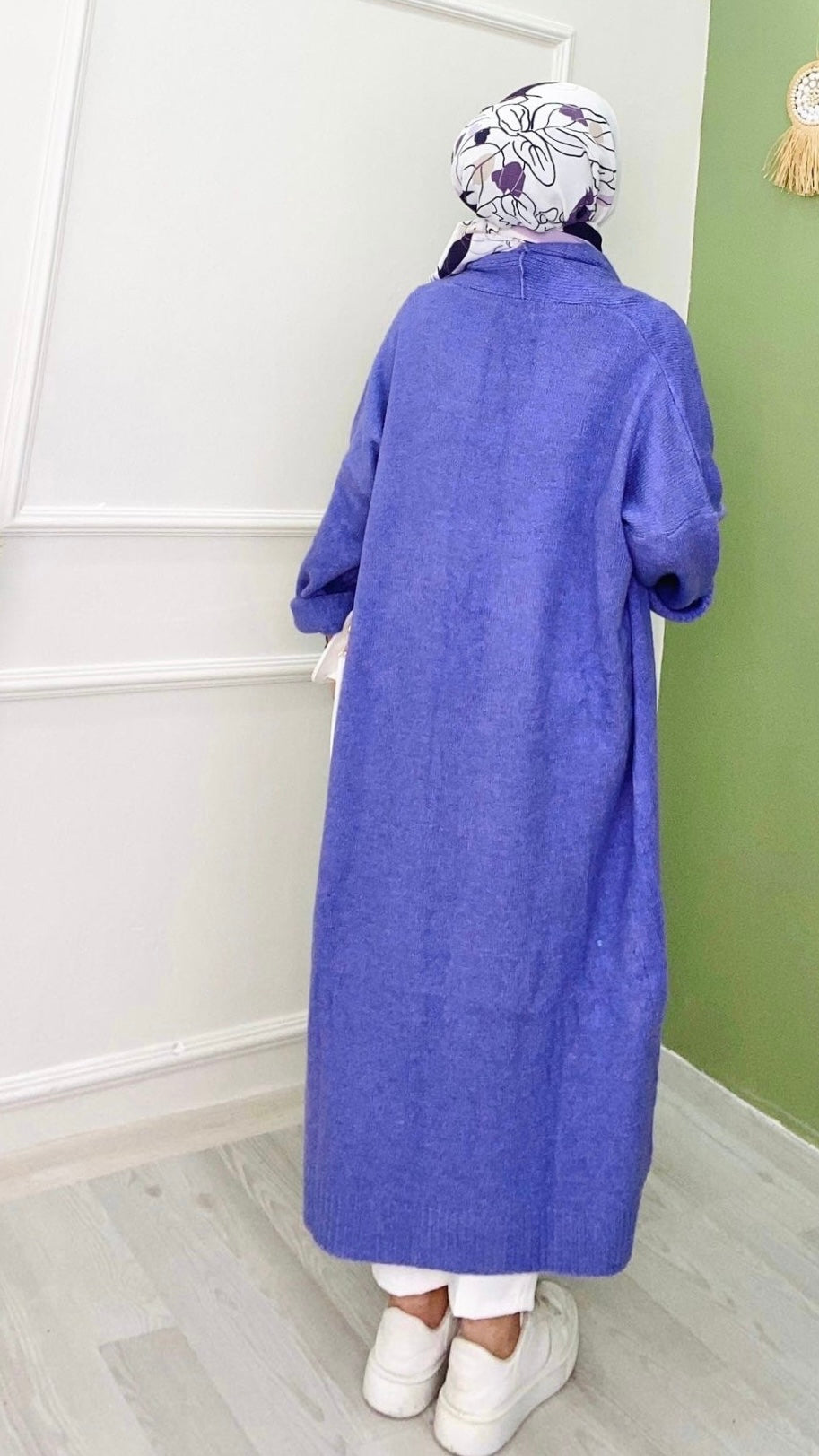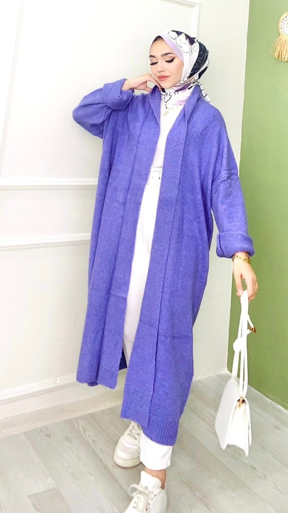 Düğmesiz Tam Boy Hırka Lila