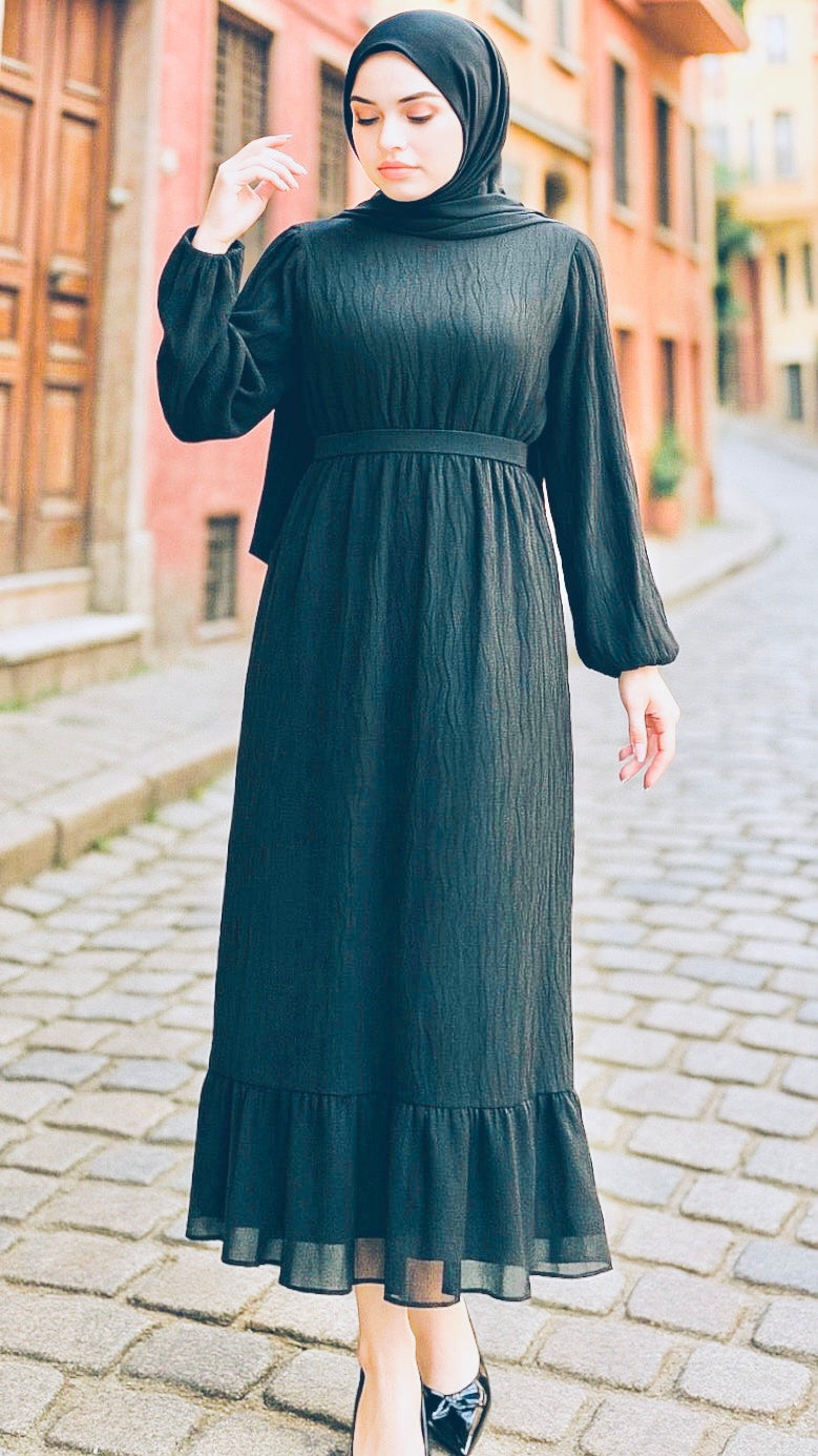 ÜRÜN ADI: Eteği Fırfırlı Kuşaklı Astarlı Şifon Elbise