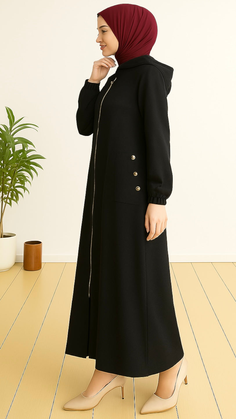 Fermuarlı Ayrobin Kumaş Kap Siyah