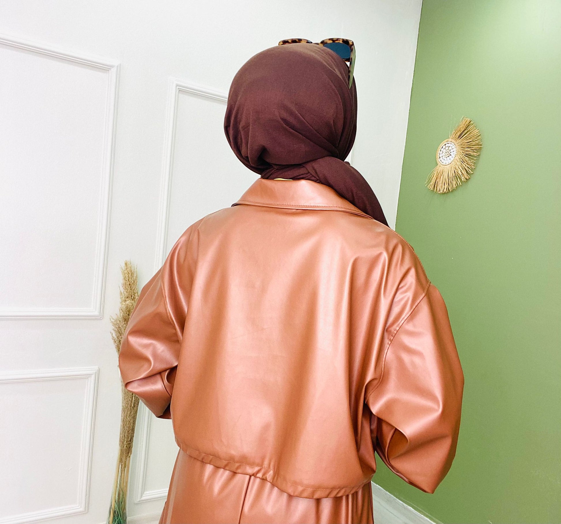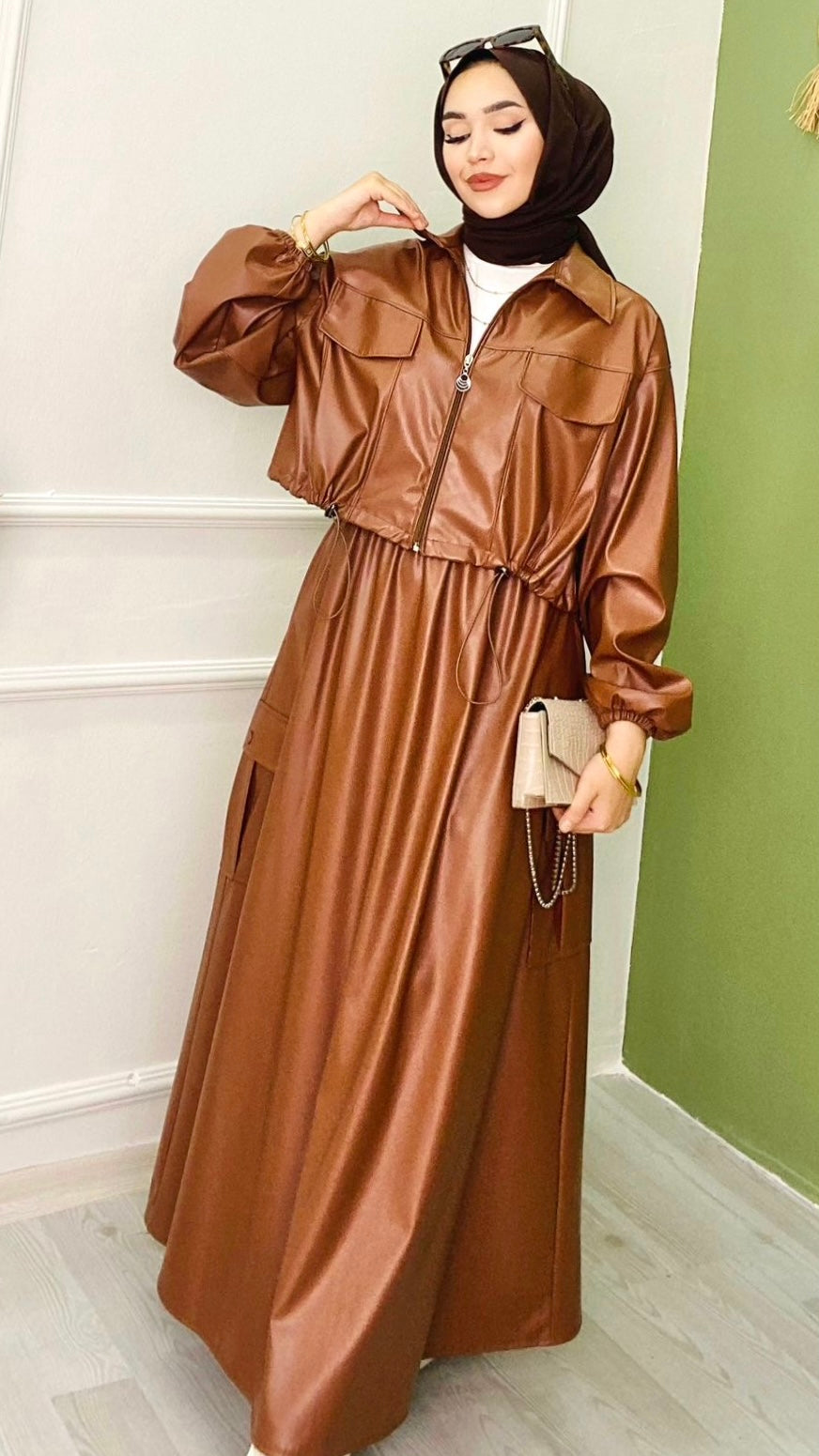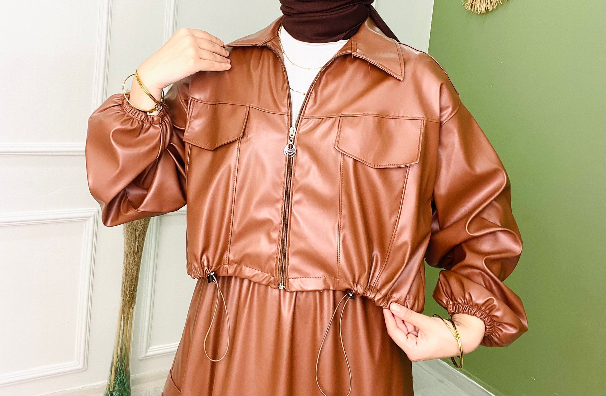 Fermuarlı Kısa Deri Ceket Kahve