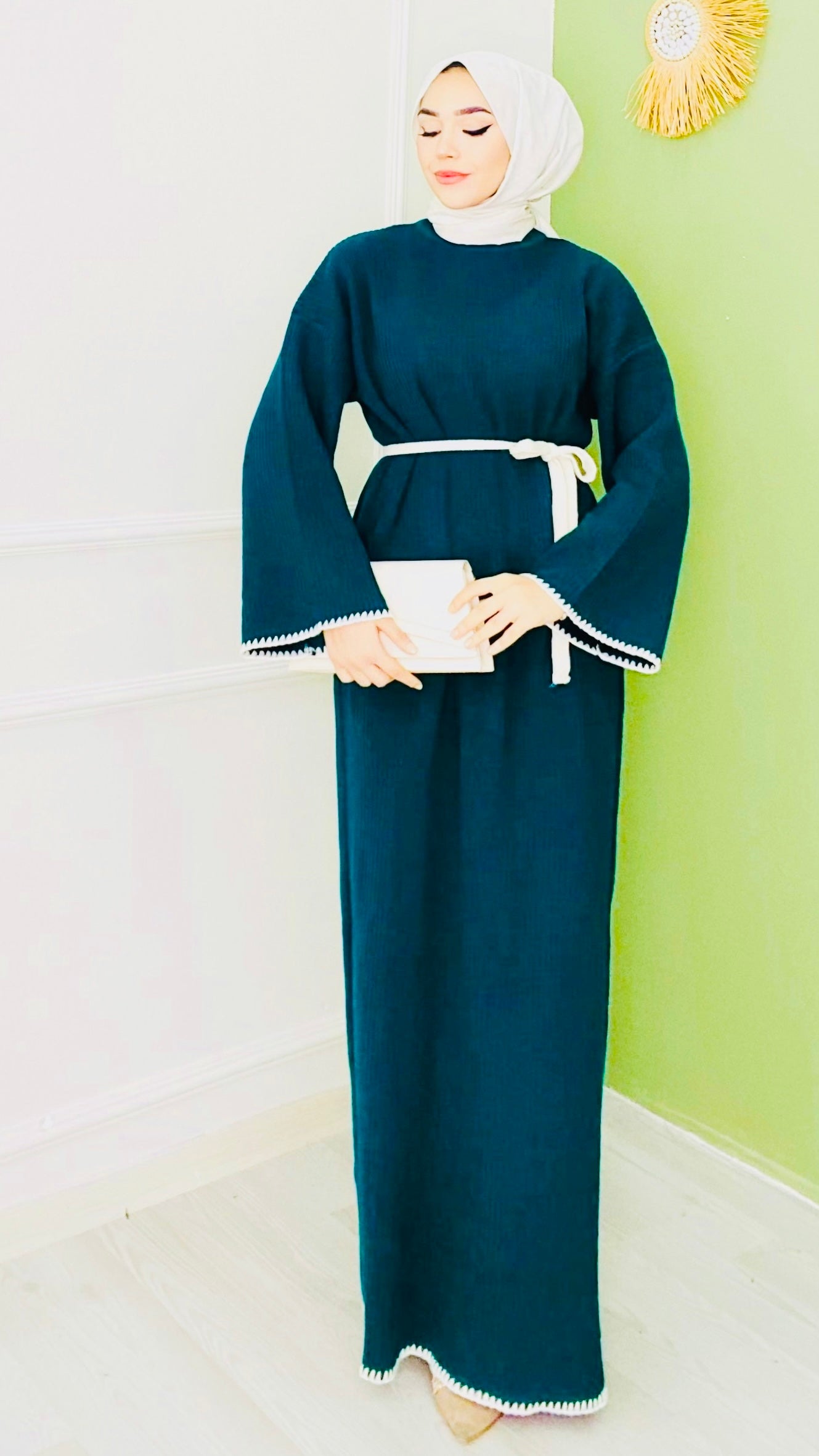ÜRÜN ADI: Nakış Detaylı Kuşaklı Triko Elbise