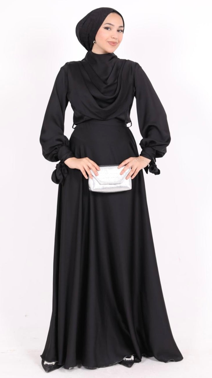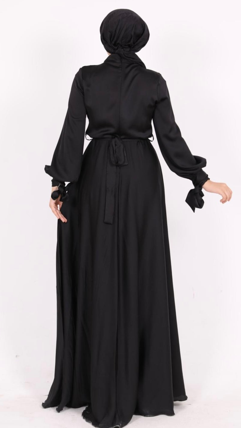 EDİTÖRÜN NOTU: Yeni sezon önünde volen detayları bulunan saten abiye elbise modelimiz özel günlerinde sade şık olmak isteyen müşterilerimiz için önerdiğimiz bir modeldir. Kuşaklıdır. Kollarında bağlama detayı bulunmaktadır. Çan kesimdir.