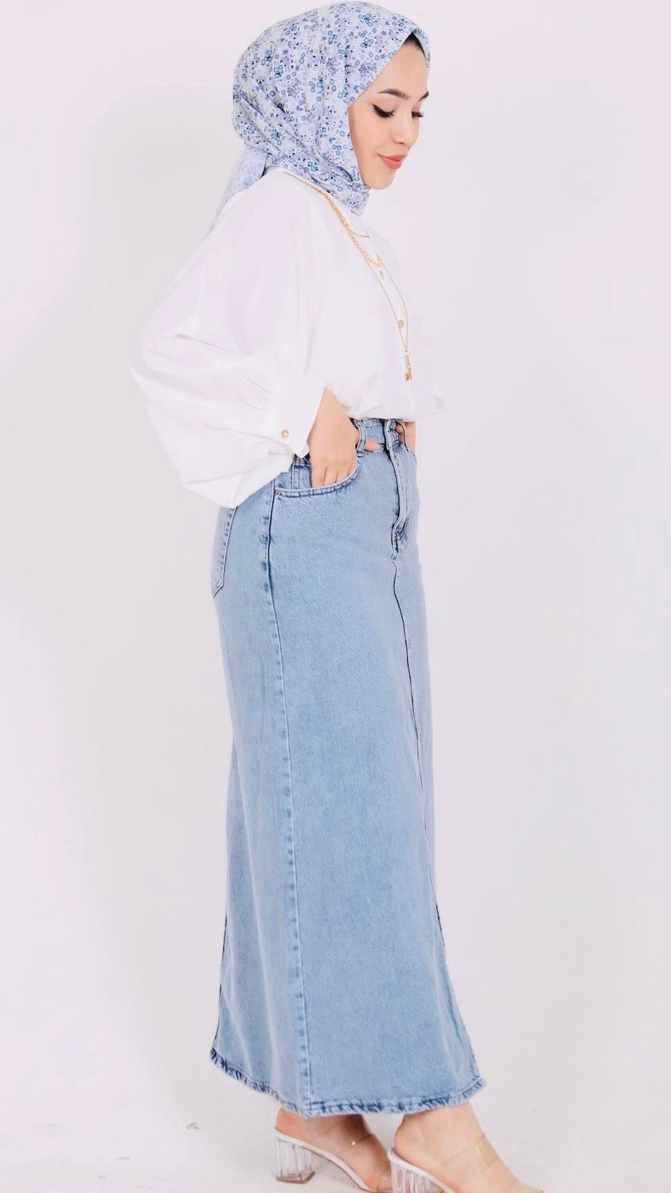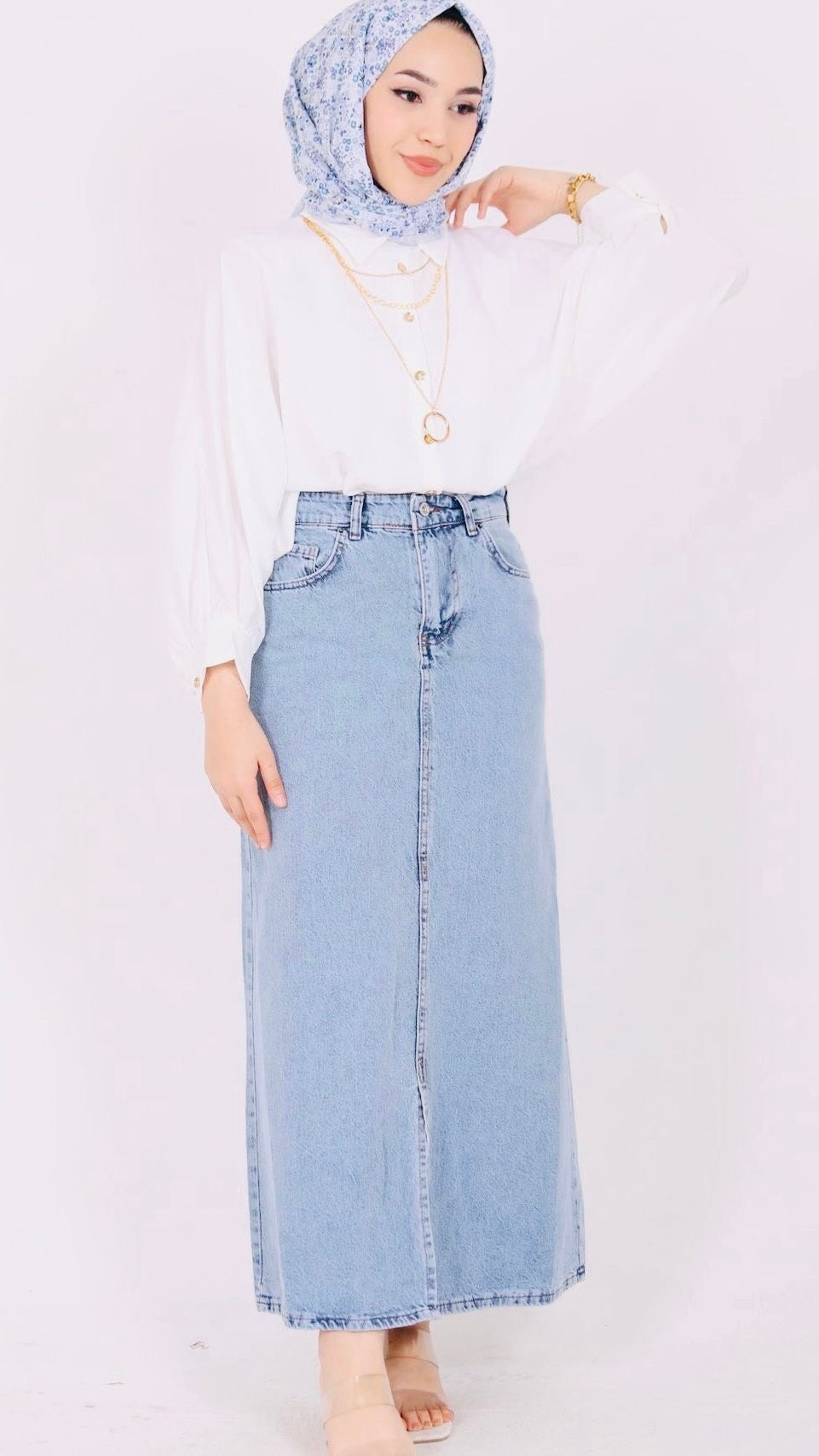 ÜRÜN ADI: Önü Yırtmaç Detaylı Kot Etek