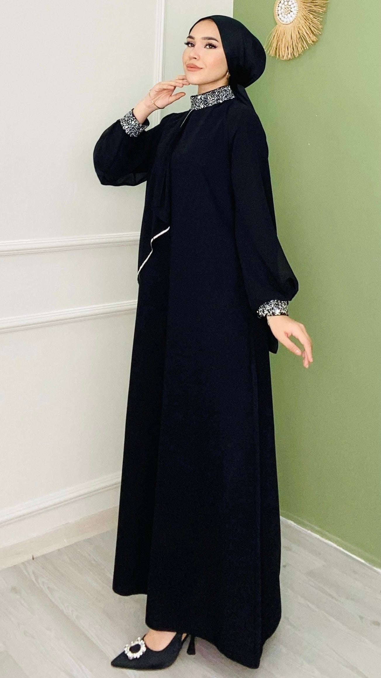 EDİTÖRÜN NOTU: iİfon Üzerine Boğazı Yakadan Dizkapağı Altına Kadar ve ayrıca Kol Bileklerinde Özel Taş İşlemeli Olup Modele Şahane Bir Görsel Katmaktadır Ayrıca Kalın Astarlı Olduğundan İç Göstermez Özellikle Büyük Beden Giynenler İçin Salaş Model Olduğundan Çok Rahat ve Kullanışlıdır Davet ve özel Günler İçin Önilir