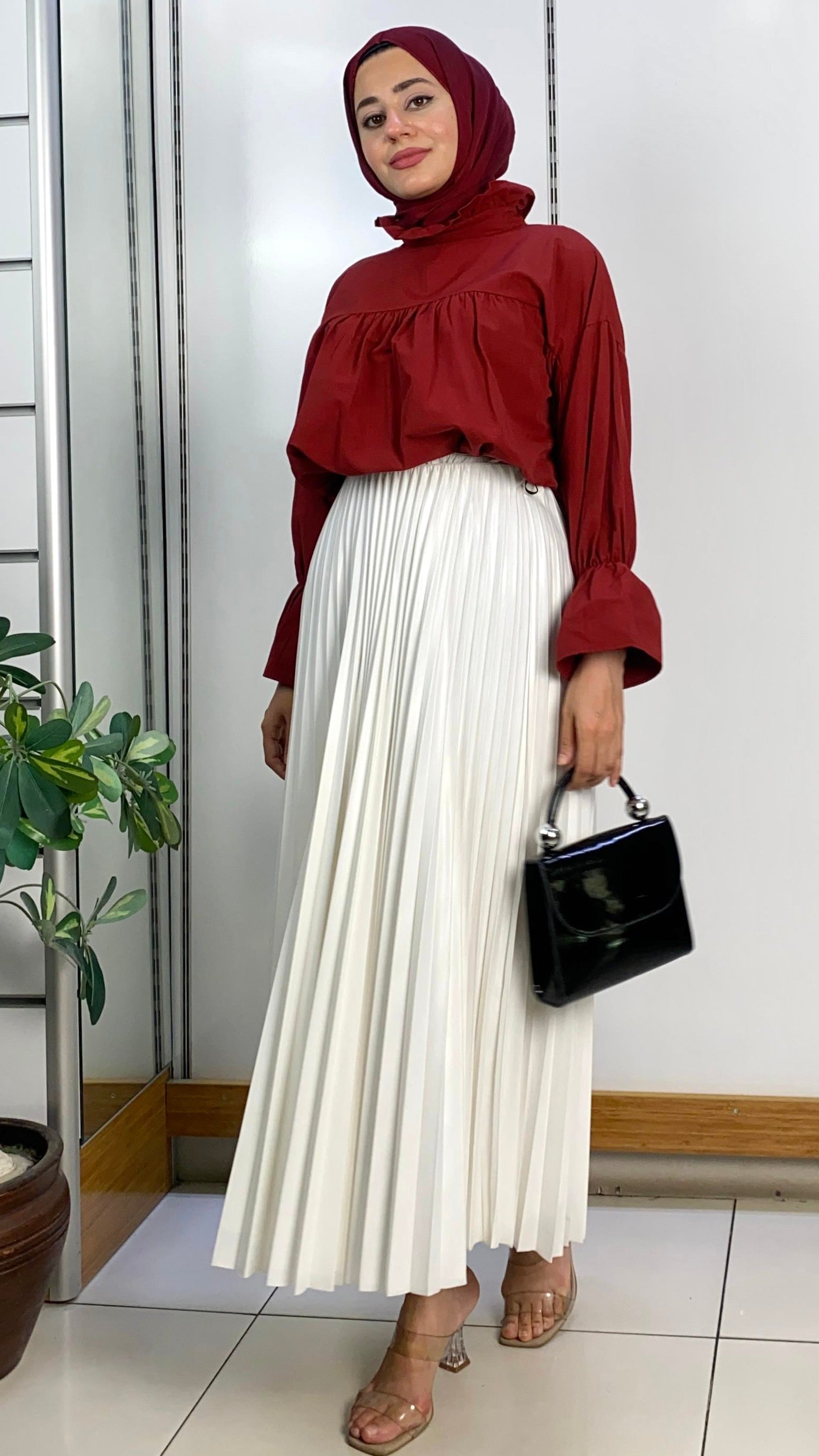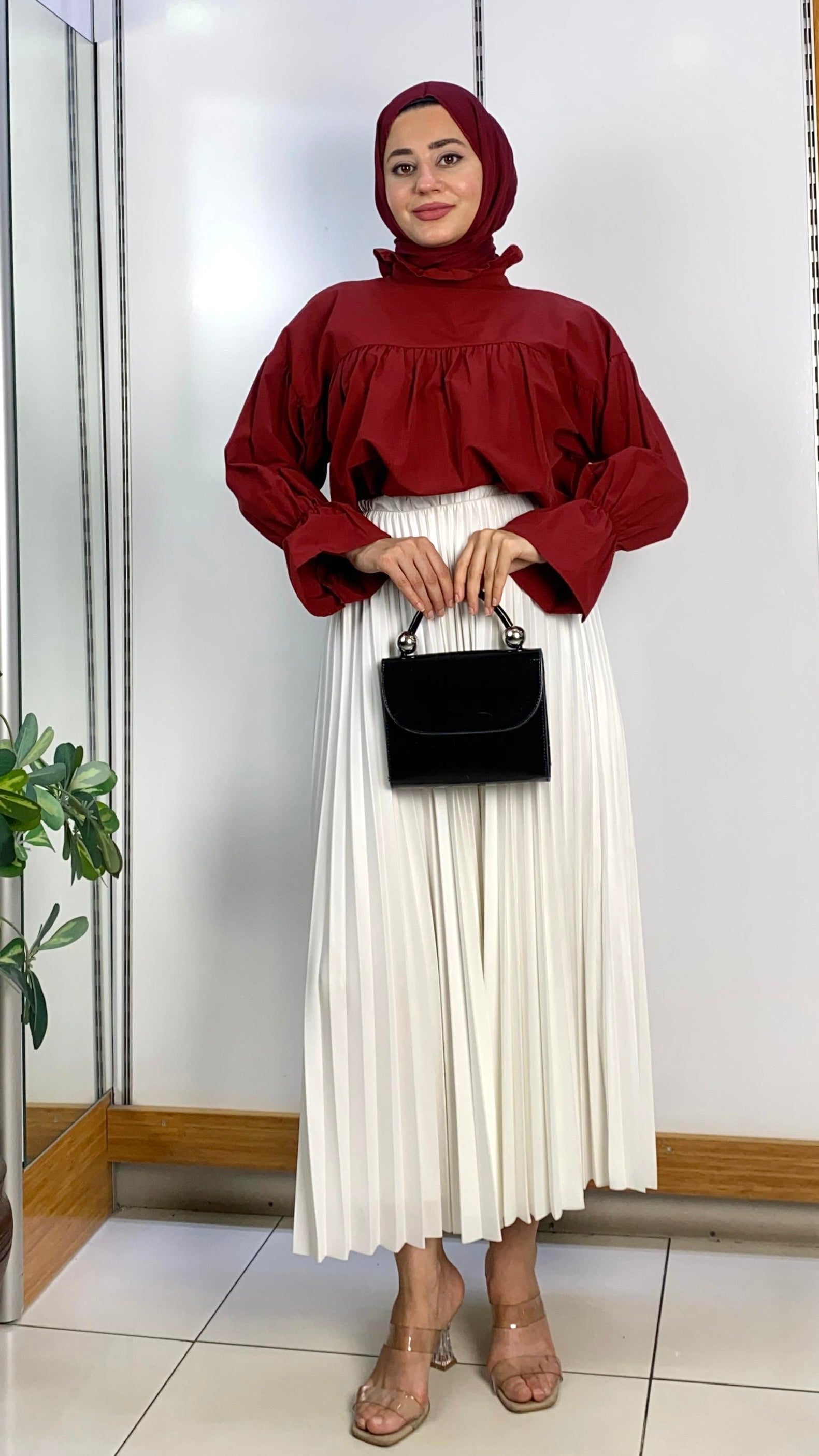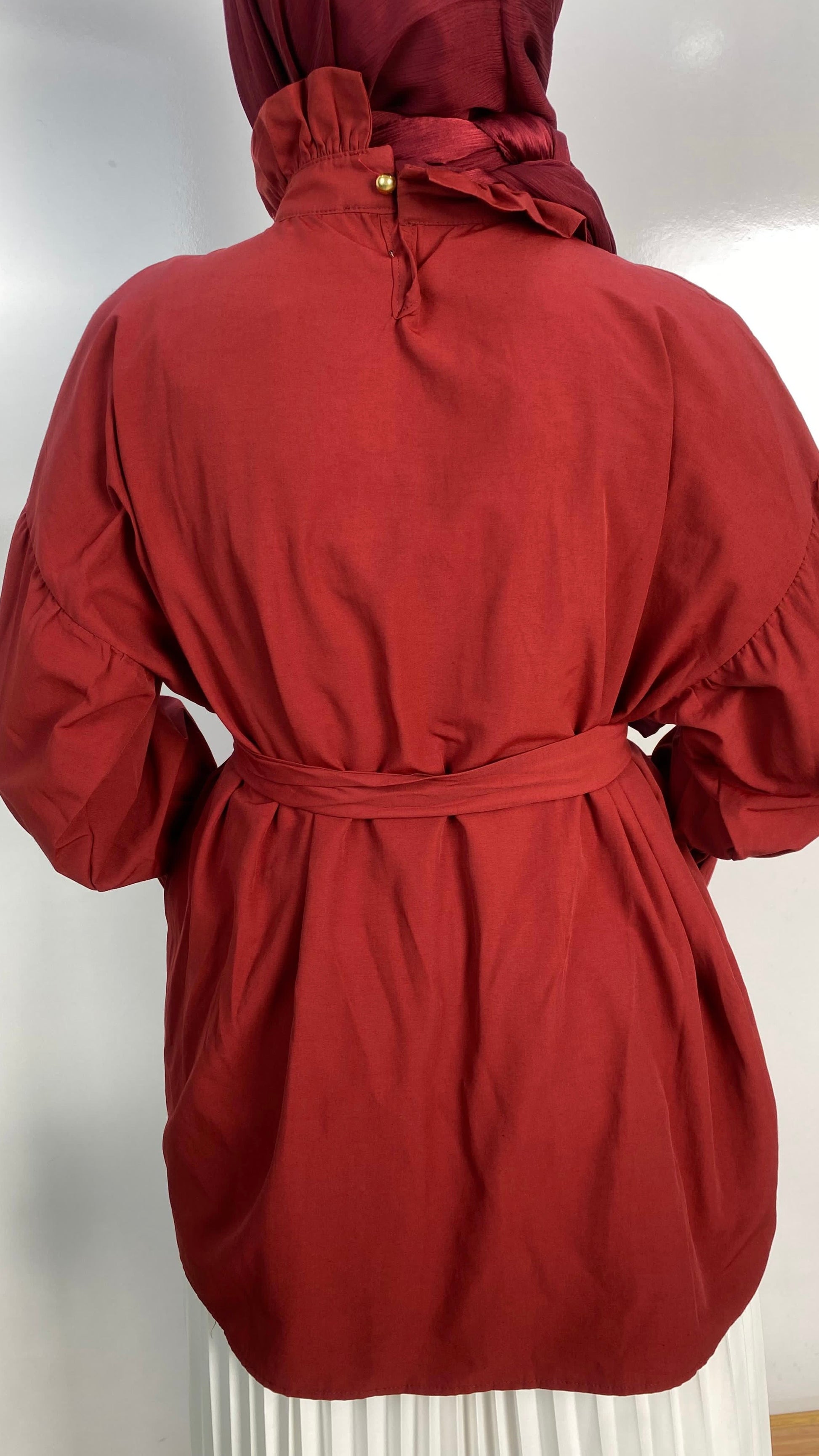 Yaka ve Kol Fırfırlı Tunik Bordo